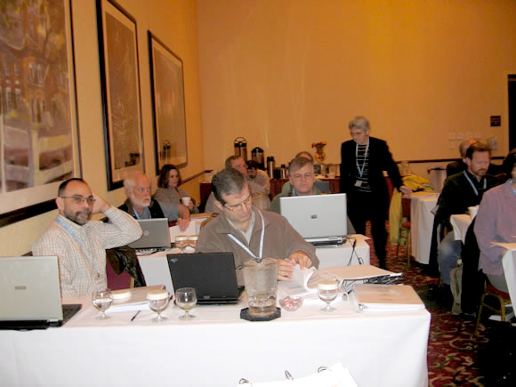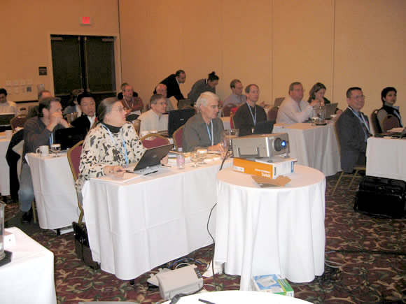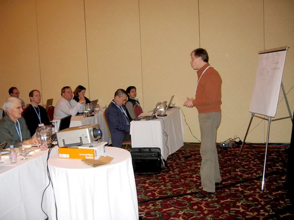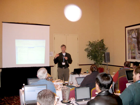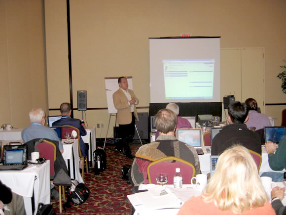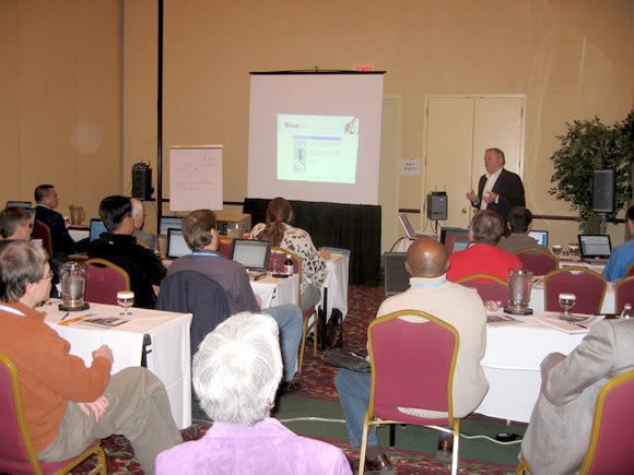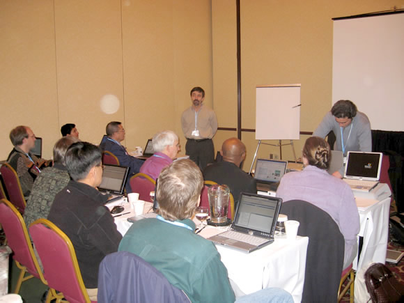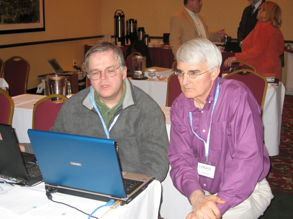 Praxis users take a moment to share their knowledge with each other. At the left, John Cichon, MD, at his right David Benton, MD, a Praxis user for more than 10 years.